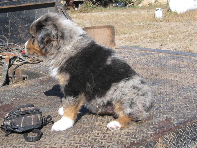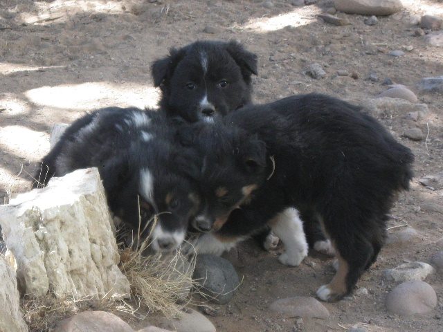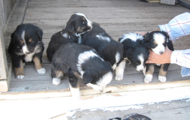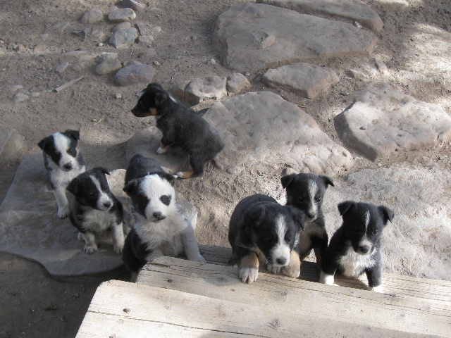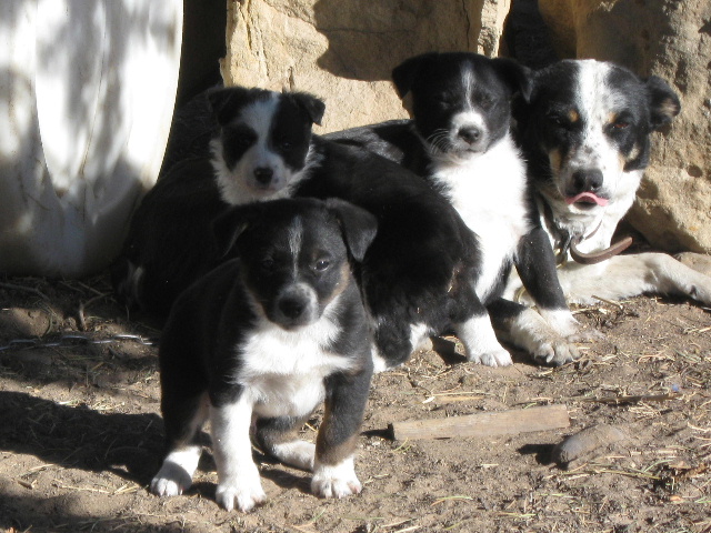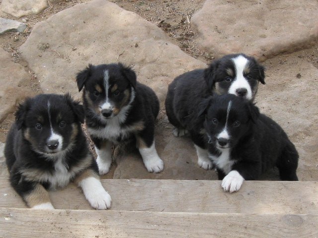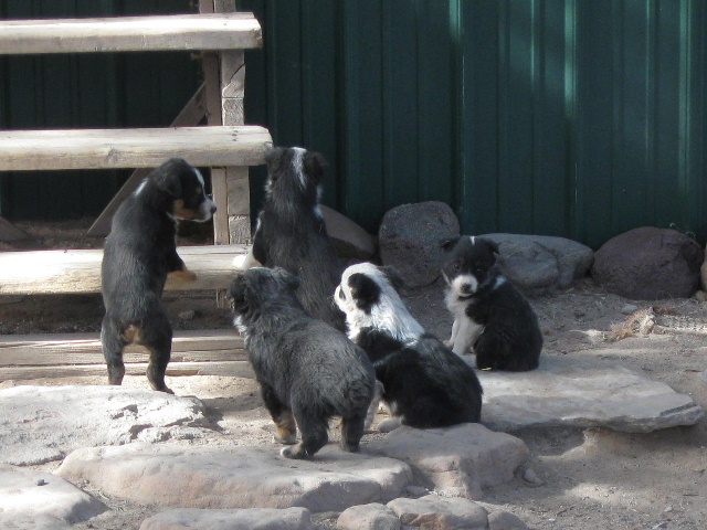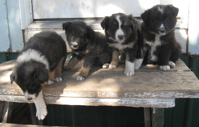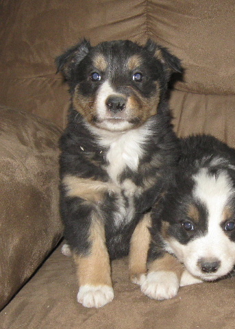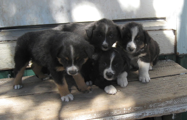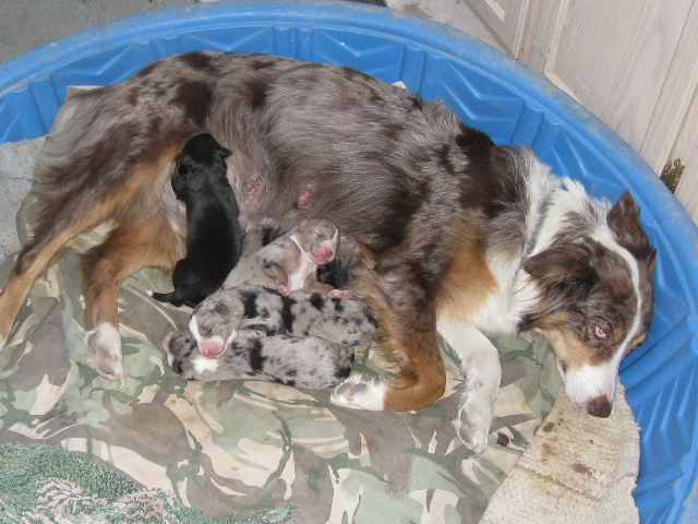 Bella is 3/4 Australian Shepherd and 1/4 Border Collie. This makes the pups 7/8 Australian Shepherd and 1/8 Border Collie