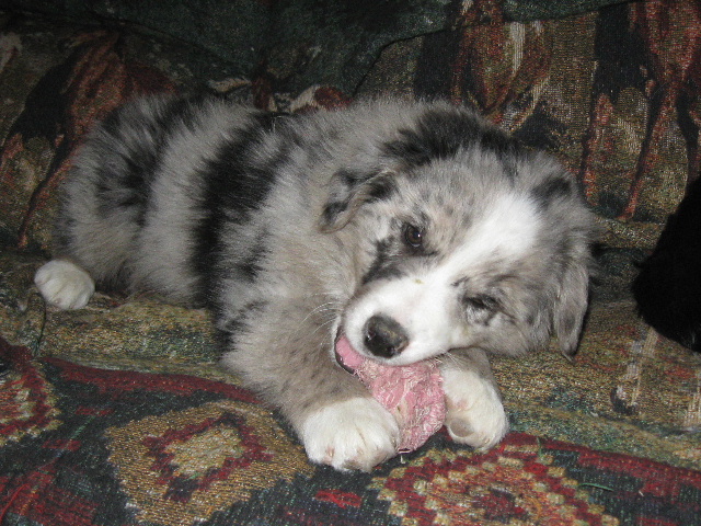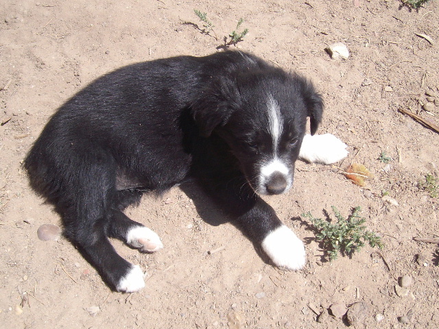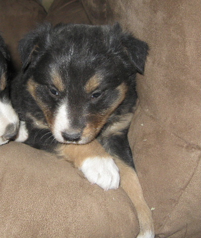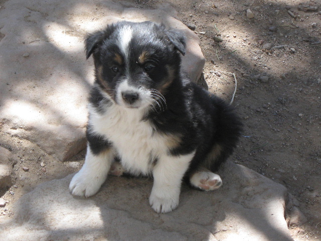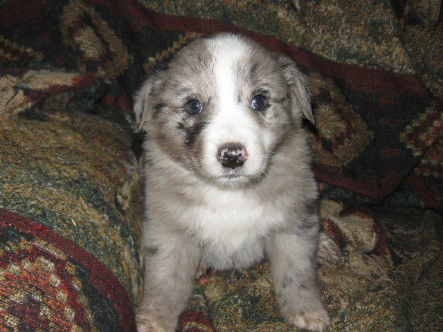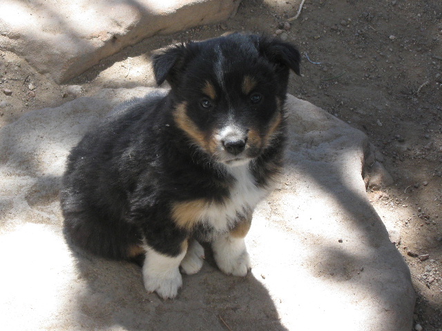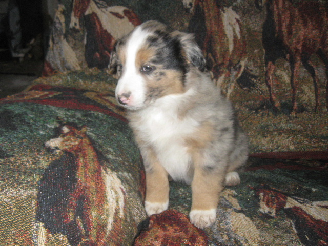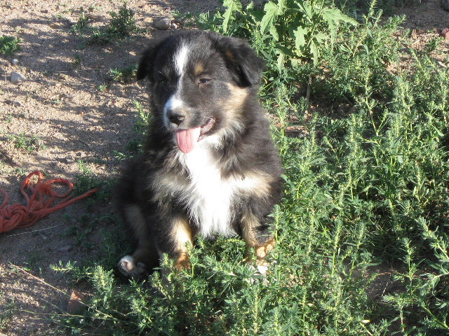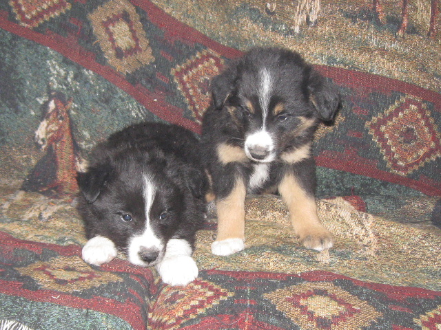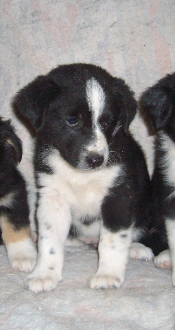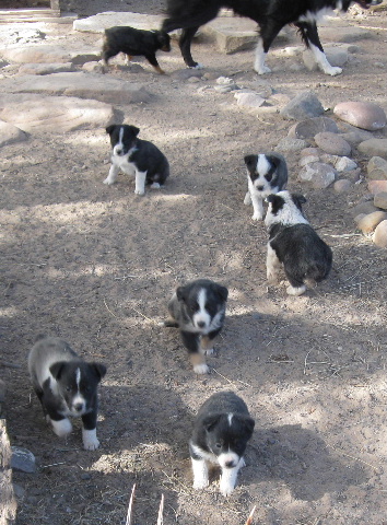 Bella is 3/4 Australian Shepherd and 1/4 Border Collie. This makes the pups 7/8 Australian Shepherd and 1/8 Border Collie